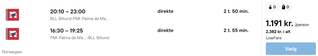 Flyprisen inkluderer kun en lille taske, men bagage kan tilkøbes.