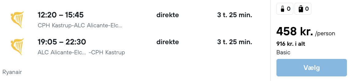 På vores flysøgemaskine har vi fundet billige flybilletter fra København til Alicante.