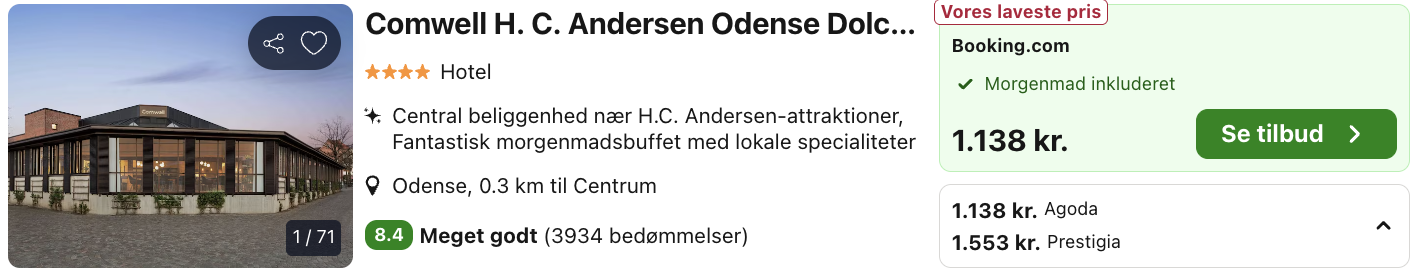 Weekendophold i Odense på H.C. Andersen Hotel for kun 569,-