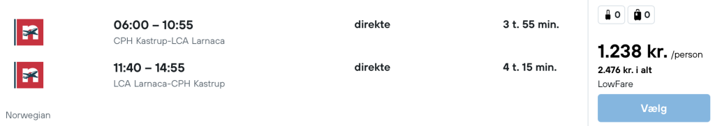 Flyprisen inkluderer kun en lille taske, men bagage kan tilkøbes.