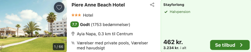 1 uge i Ayia Napa med halvpension for kun 2.855,- per person inkl. fly, 3-stjernet hotel med pool og beliggenhed ved stranden!