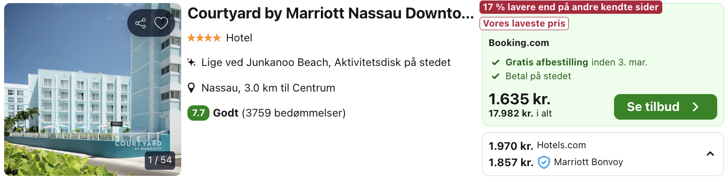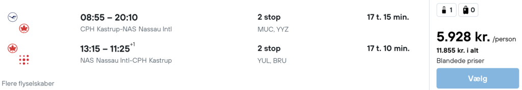 På vores flysøgemaskine har vi fundet billige billetter fra København til Bahamas.