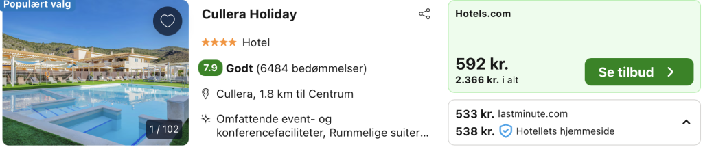 | Husk at lade søgningen blive helt færdig. Vælg “laveste pris” på trivago, for at opnå den bedste pris på hotellet. Der kan være mindre prisforskelle på mobil og pc.