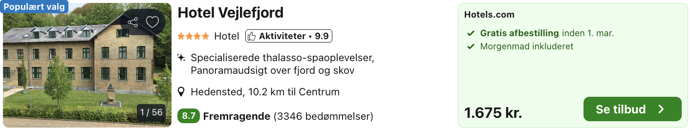 Ophold på 4-stjernede Hotel Vejlefjord for kun 838,- per person inkl. morgenmad!