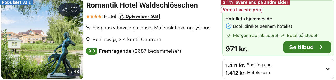Romantik Hotel Waldschlösschen ligger idyllisk i Sleswig og kombinerer komfort, elegance og afslapning.