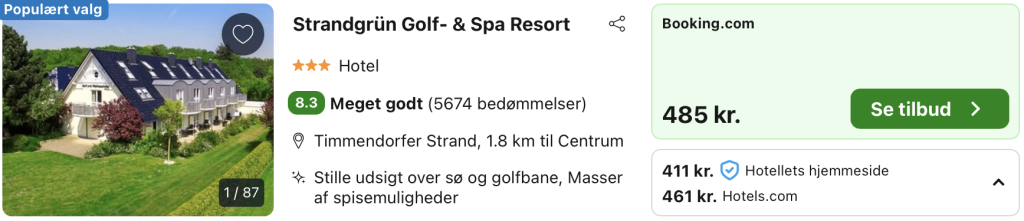 Vi har taget udgangspunkt i et ophold fra den 14. – 15. marts på det flotte Strandgrün Golf- & Spa Resort, der ligger ved Østersøkysten midt i Timmendorfer Strands idylliske landskab og lige ved Slesvig-Holstens største golfbane. Hotellet byder på 85 moderne og stilfuldt indrettede værelser og fremstår i en moderne landstil med en afslappet atmosfære.