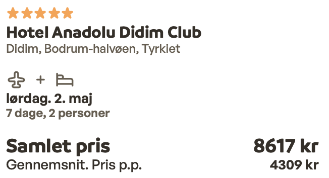 Hvis rejsen er med “Vis rejse” link, så er der tale om en pakkerejse, hvor fly og hotel bestilles på en gang.