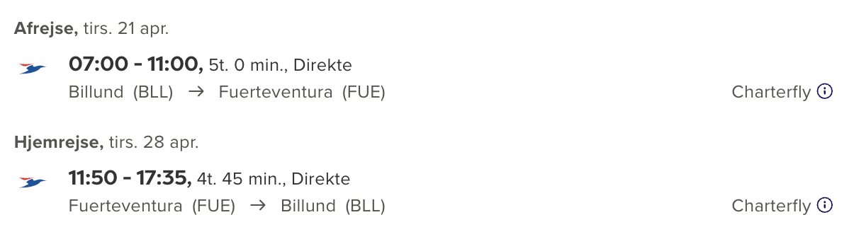 Hvis rejsen er med “Vis rejse” link, så er der tale om en pakkerejse, hvor fly og hotel bestilles på en gang.