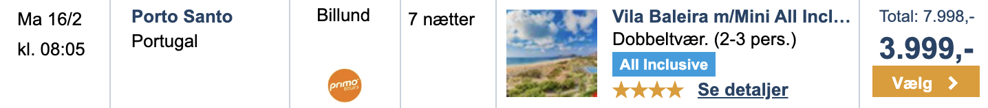 På Travelmarket har vi hos Primo Tours fundet et godt tilbud fra Billund til Porto Santo.