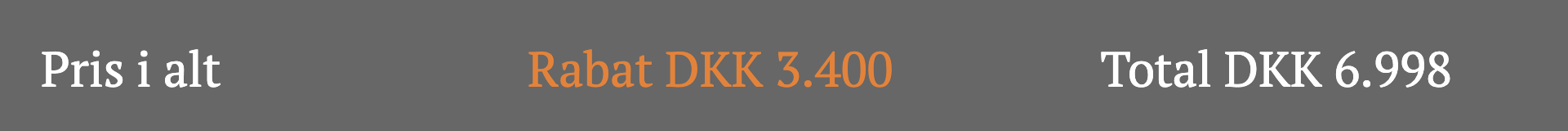 Den samlede pris vises for 2 personer. Den samlede pris er 6.998,-/2 = 3.499,-
