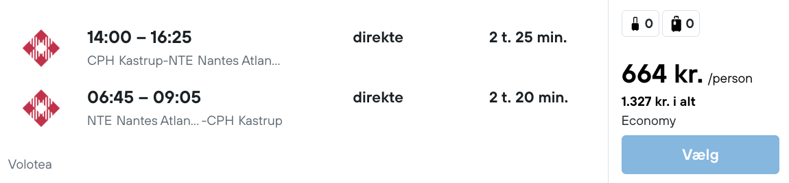 På vores flysøgningsmaskine har vi fundet billige flybilletter fra København til Nantes: