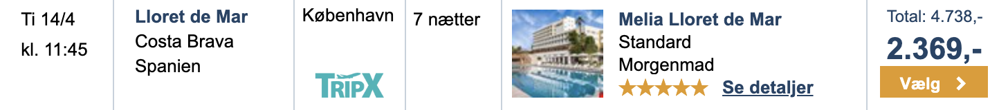 Bemærk: Travelmarket og TripX viser den samlede pris for 2 personer.