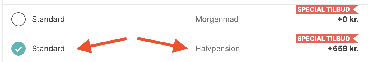 Som udgangspunkt er morgenmad inkluderet. Ønskes halvpension inkluderet, så skal det tilvælges til 659,- ekstra per person. Dette skal gøres inden betaling.