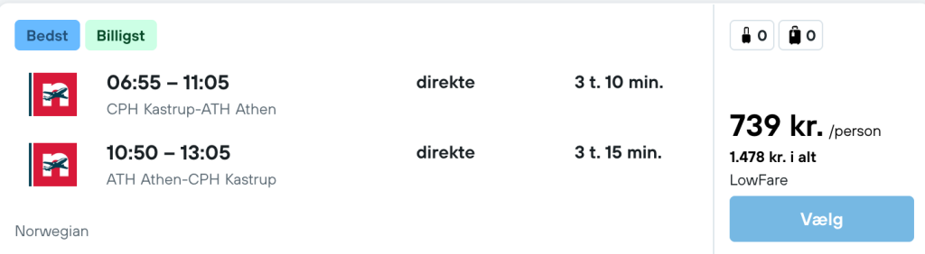 På vores flysøgningsmaskine har vi fundet billige flybilletter fra København til Athen: