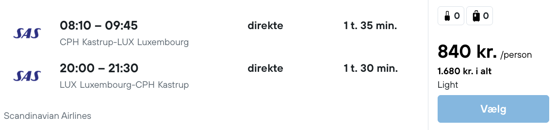 På vores flysøgningsmaskine har vi fundet billige flybilletter fra København til Luxembourg: