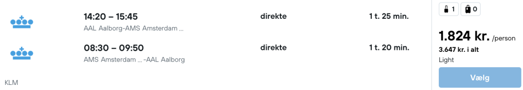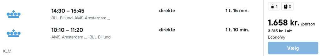 På vores flysøgningsmaskine har vi fundet direkte flybilletter fra København, Billund og Aalborg til Amsterdam.