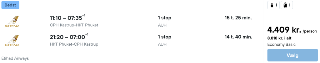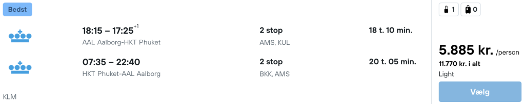 Hvis rejsen er med “Vis rejse” link, så er der tale om en pakkerejse, hvor fly og hotel bestilles på en gang.