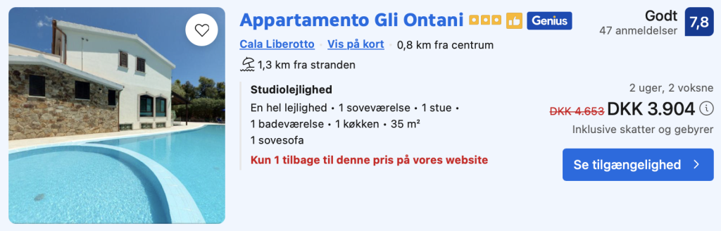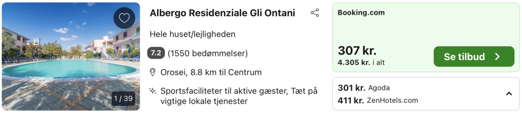 Husk at logge ind / oprette en gratis bruger på trivago samt hos Booking.com. Derved opnås den bedste pris!