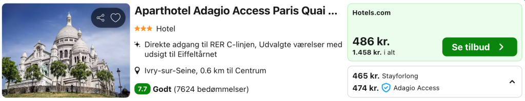 | Bemærk: Der kan være mindre prisforskelle på mobil og pc. Undersøg med fordel, hvor det er billigst inden bestilling. Vælg “Vores laveste pris” på trivago, for at opnå den bedste pris på hotellet.