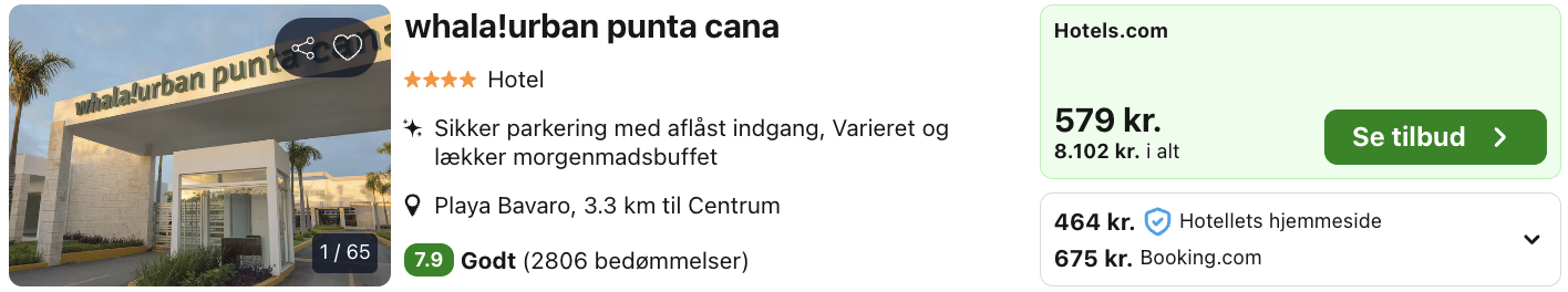 | Bemærk: Husk at lade flysøgningen blive helt færdig. Vælg “Vores laveste pris” på trivago, for at opnå den bedste pris på hotellet.