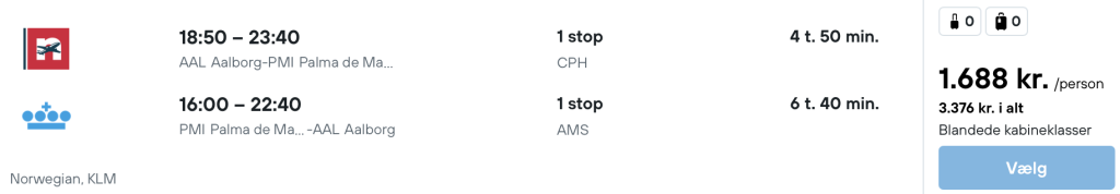 Hvis rejsen er med “Vis rejse” link, så er der tale om en pakkerejse, hvor fly og hotel bestilles på en gang.