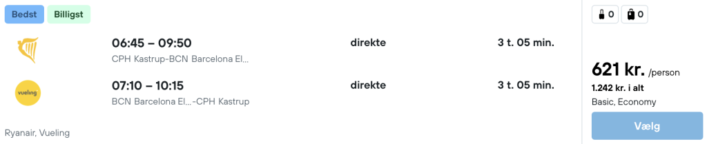 Vi har fundet billige flybilletter fra København til Barcelona.