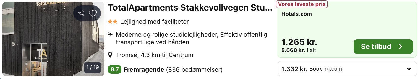 Vælg booking.com på trivago og opret en gratis bruger eller log ind. Derved opnås den billigste pris.