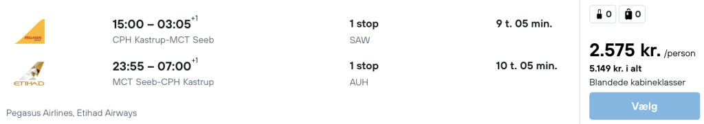 Flyprisen inkluderer kun en lille taske, men bagage kan tilkøbes.