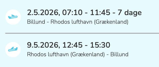 Hvis rejsen er med “Vis rejse” link, så er der tale om en pakkerejse, hvor fly og hotel bestilles på en gang.