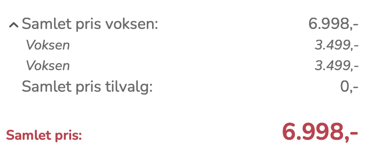 | Bemærk: Nazar viser den samlede pris for 2 personer.