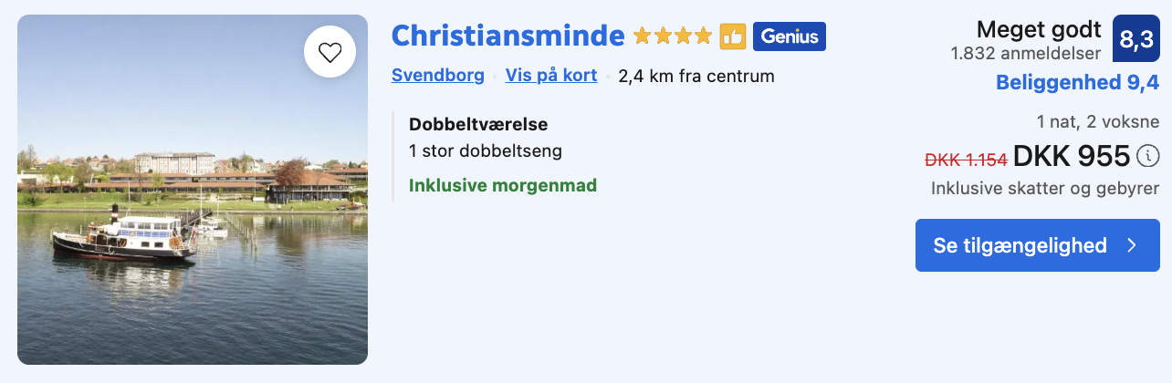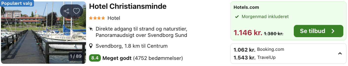 Vælg booking.com på trivago og opret en gratis bruger eller log ind. Derved opnås den billigste pris.