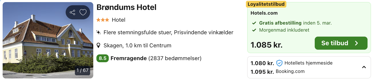 Weekendophold på Brøndums Hotel i Skagen for kun 543,- per person inkl. ikonisk hotel med morgenmad og skøn beliggenhed!