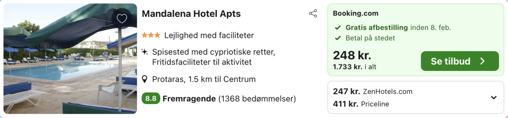 1 uge på Cypern for kun 2.060,- per person inkl. fly og 3-stjernet hotel med pool!