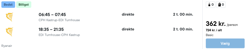 Flyprisen inkluderer kun en lille taske, men bagage kan tilkøbes.