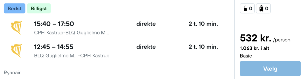 På vores flysøgemaskine har vi fundet billige flybilletter fra København til Bologna:
