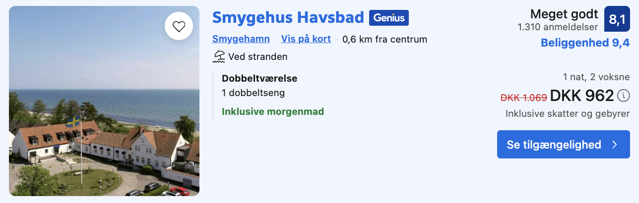Vælg booking.com på trivago og opret en gratis bruger eller log ind. Derved opnås den billigste pris.