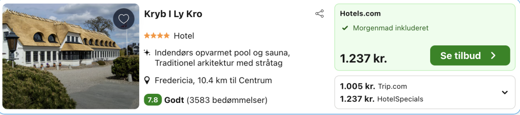 Bemærk: Den samlede pris for opholdet er 1.005,- for 2 personer i et dobbeltværelse, hvilket svarer til 503,- per person. Der kan være mindre prisforskelle på mobil og pc. Undersøg med fordel, hvor det er billigst inden bestilling. Rejs365 er ikke et rejsebureau, men en rejseside, der finder gode tilbud! – Vi modtager kommission, men det påvirker ikke din pris! Læs mere her