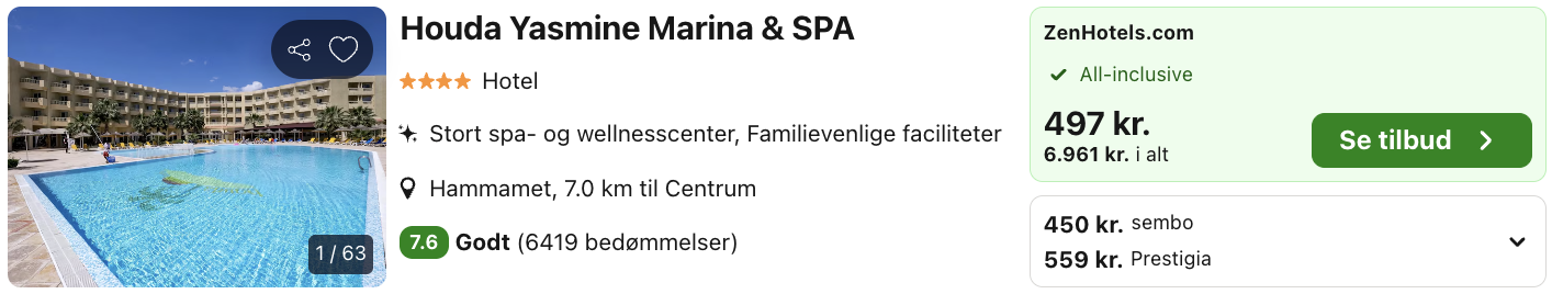 2 uger i Hammamet i Tunesien med all inclusive for kun 4.941,- per person inkl. fly og flot 4-stjernet hotel med all inclusive og beliggenhed ved stranden!