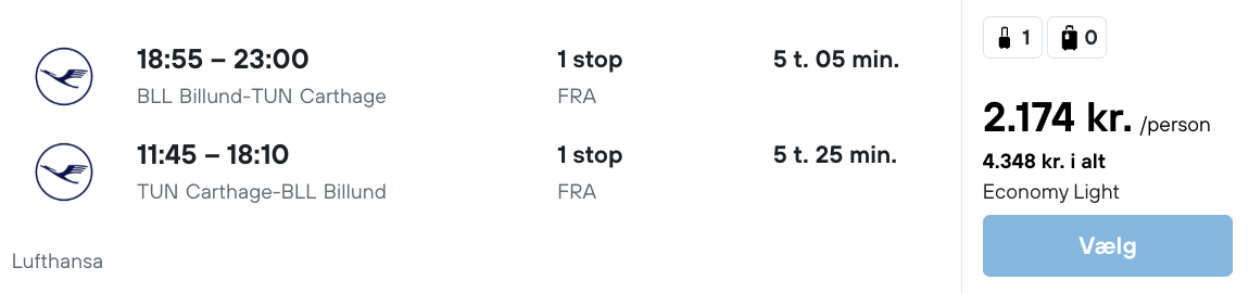 På vores flysøgemaskine har vi fundet billige billetter fra København og Billund til Tunis.
