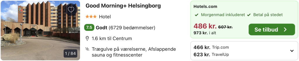 Vi har taget udgangspunkt i et ophold fra den 6. – 8. marts på Good Morning+ Helsingborg, der ligger i rolige omgivelser i den sydlige del af Helsingborg, tæt på både motorvej, færgehavn og byens centrum. Hotellet har en moderne og funktionel indretning med lyse værelser, komfortable senge og et enkelt udtryk, der passer godt til både korte ophold og gennemrejser. Atmosfæren er afslappet og uformel, og hotellet er et populært valg for både forretningsrejsende og feriegæster.