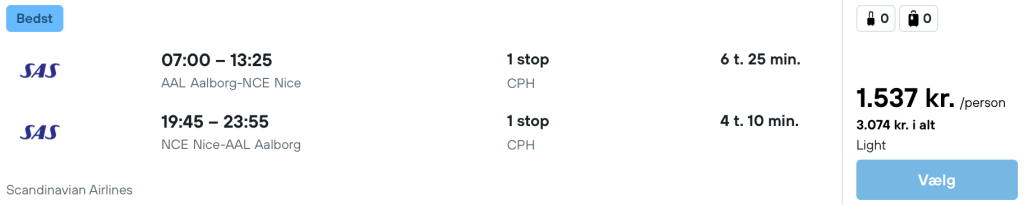 Flyprisen inkluderer kun en lille taske, men bagage kan tilkøbes.