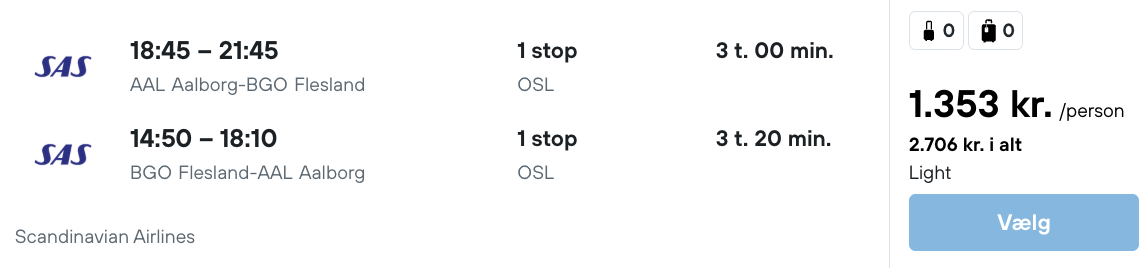 Flyprisen inkluderer kun en lille taske, men bagage kan tilkøbes.
