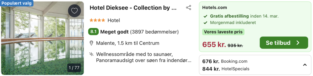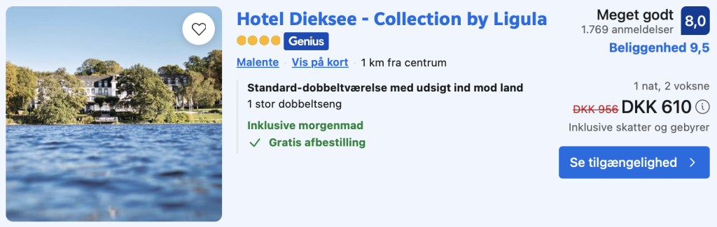 Husk at logge ind / oprette en gratis bruger på trivago samt hos Booking.com. Derved opnås den bedste pris!