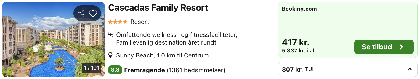 Vi har fundet et godt tilbud fra København til Sunny Beach:
