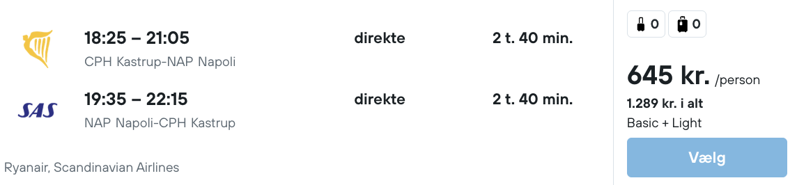 På vores flysøgemaskine har vi fundet billige flybilletter fra København til Napoli: