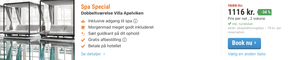 Bemærk: Den samlede pris for overnatningen er 1.194,- for 2 personer i et dobbeltværelse med morgenmad, hvilket svarer til 597,- per person. Rejs365 er ikke et rejsebureau, men en rejseside der finder gode tilbud! – Vi modtager kommission, men det påvirker ikke din pris! Læs mere her