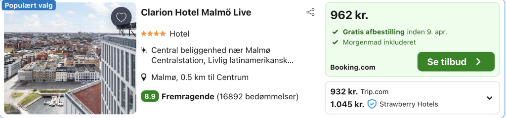 Weekendophold på 4-stjernede Clarion Hotel Malmö Live for kun 466,- per person inkl. morgenmad, fantastisk beliggenhed og panoramaudsigt over omgivelserne!