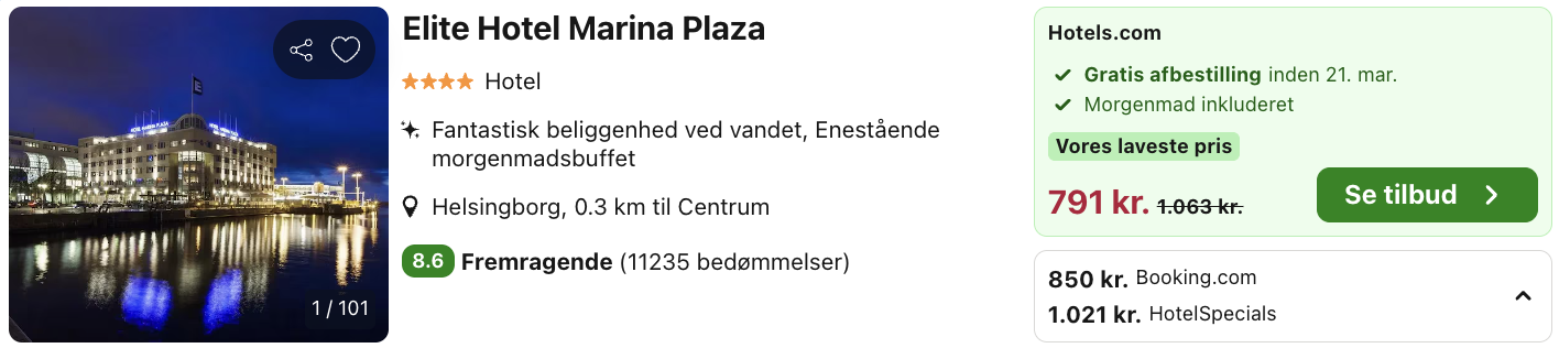 Weekendophold på Elite Hotel Marina Plaza i Helsingborg for kun 396,- per person inkl. morgenmad og super beliggenhed direkte ud til vandet!