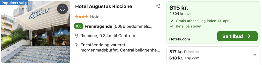 1 uge i Riccione for kun 2.180,- per person inkl. fly og flot 4-stjernet hotel!