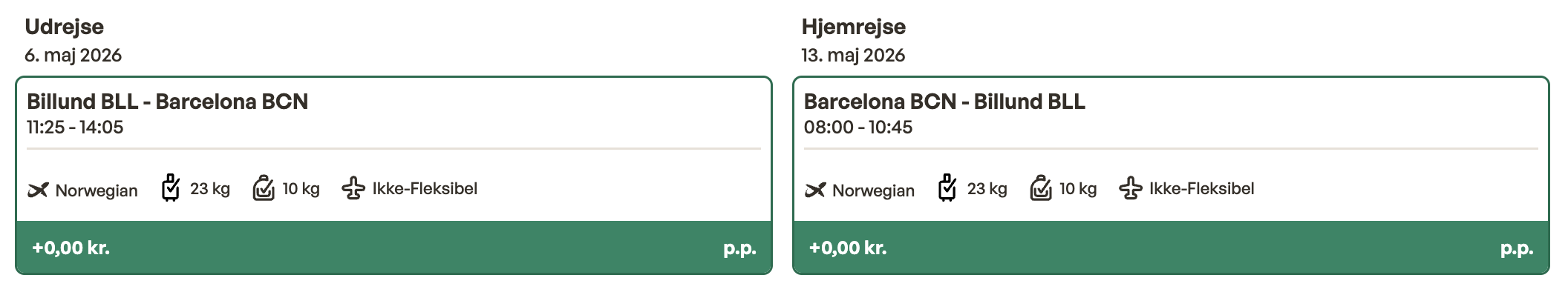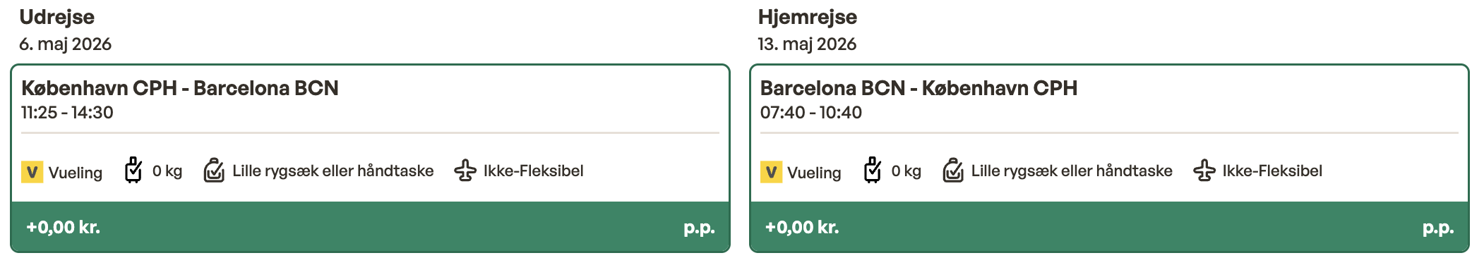 Flyprisen inkluderer en lille taske samt en indtjekket bagage.